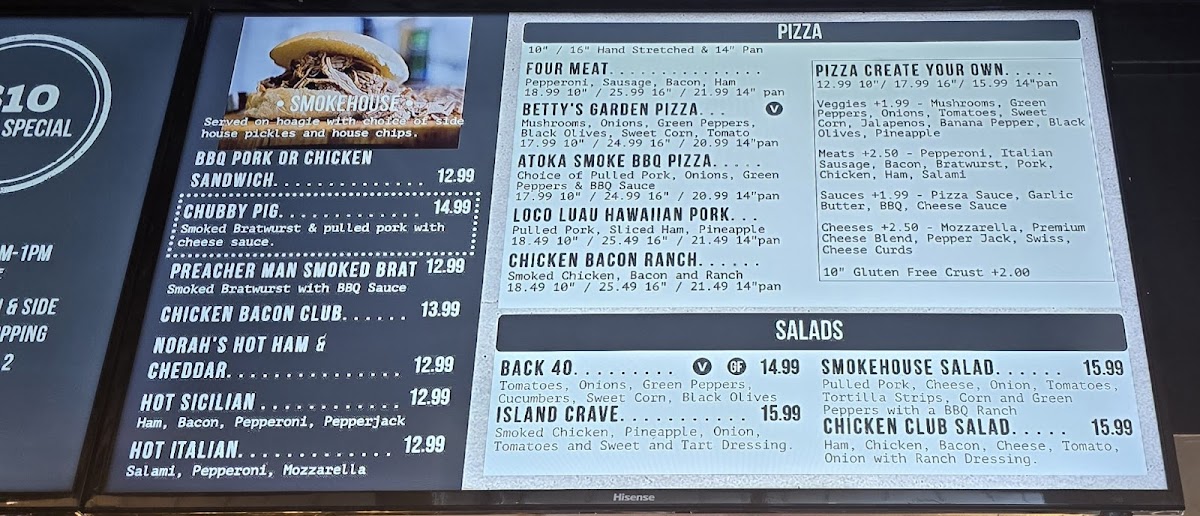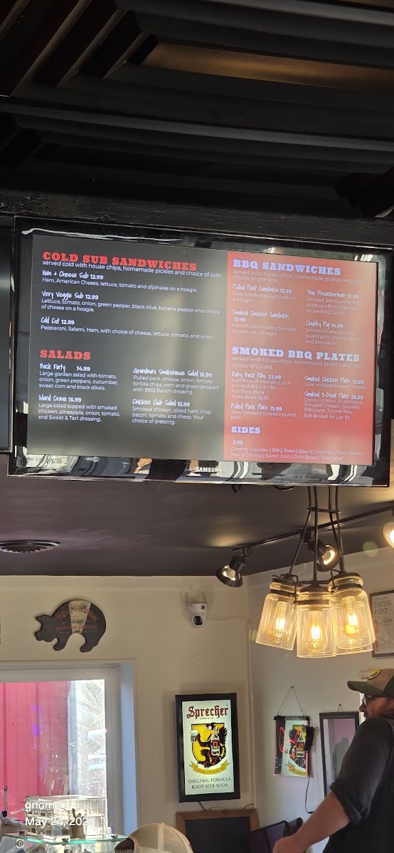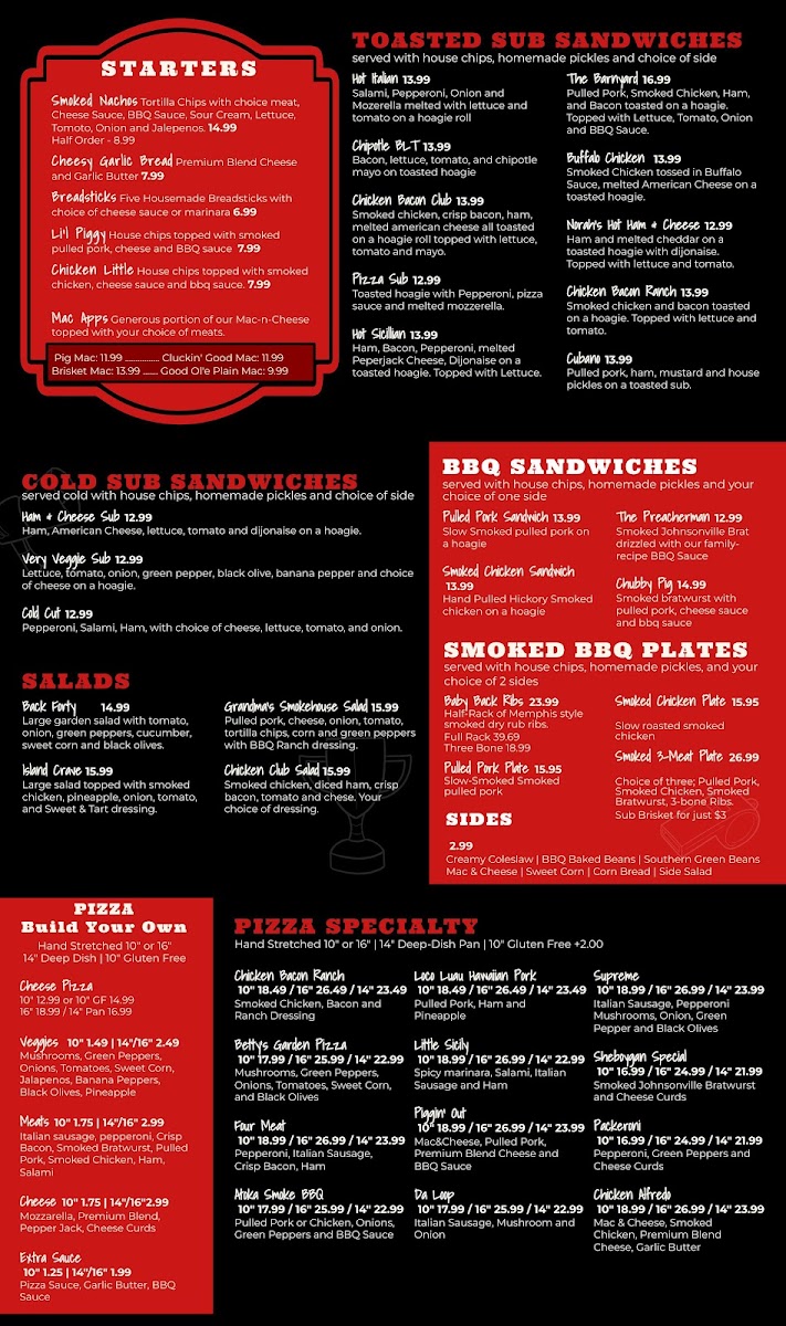 Papa B's Pizza & Barbecue offers a diverse and flavorful menu perfect for any craving. Start with their delicious Smoked Nachos or Cheesy Garlic Bread, both perfect for sharing. Their toasted sub sandwiches, including the Chipotle BLT and Chicken Bacon Club, are packed with flavor, while cold subs like the Ham & Cheese Sub offer a refreshing alternative. For salad lovers, options such as the Back Forty and Island Crave provide a fresh and hearty choice. The BBQ sandwiches, including the savory Pulled Pork Sandwich and Smoked Chicken Sandwich, are a hit, while the Chubby Pig is a standout for those looking for something extra special. If you're in the mood for a full plate, their Baby Back Ribs or the Smoked 3-Meat Plate will satisfy your appetite. For pizza enthusiasts, the Chicken Bacon Ranch and Betty’s Garden Pizza offer deliciously unique options, while the Supreme pizza is a classic favorite. Sides like Creamy Coleslaw and Southern Green Beans perfectly complement the smoky flavors of the BBQ, and drinks from Jolly Good Soda and Leinenkugels add a refreshing touch to the meal. With their variety of smoked meats, sandwiches, and hearty sides, Papa B's provides a fulfilling and flavorful dining experience for all.